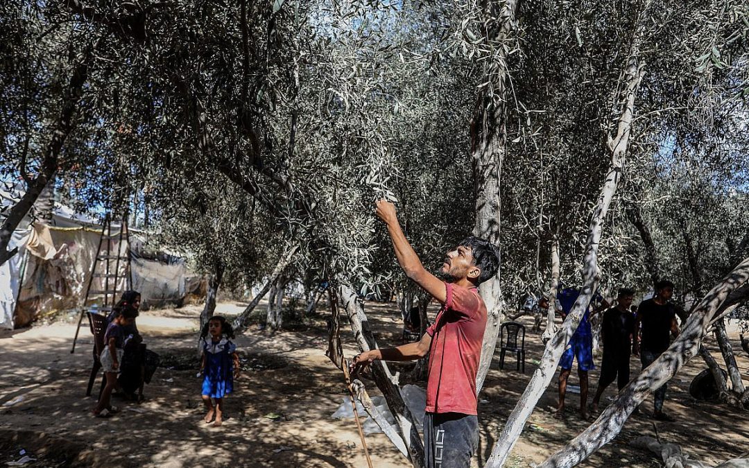 Over the past several weeks, Palestinian olive farmers in Gaza have been desperately trying to salvage what remains of their crops. For many of them, that’s not much at all: over three-quarters of olive trees in the Strip have been destroyed by Israel’s attacks over the last year. Many trees that were not directly bombed or bulldozed shed their fruits as a result of the force of nearby explosions, which have also limited the ability of farmers to safely access their groves. Some farmers have even had to take the devastating decision to cut down their trees for fuel.